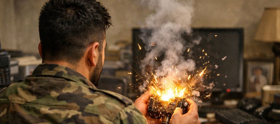 كانت رسائل جهاز النداء تنهمر كالمطر، لا هدنة بينها. مرّ صديقي قرب غرفتي عندما دوّى الجهاز برنّة غريبة نافرة، فالتفت إليّ مستغرباً الصوت. ذاك الرنين الغريب كفيل بأن يدفع أيّ شخصٍ لإمساك الجهاز فوراً، حملتُه بيدي اليسرى ووضعته على فخذي، فاحتملت أنّ عطلاً طرأ على الجهاز. «هنالك خطأ، يُرجى الضغط على زرّ ok»؛ كلماتٌ احتلّت الشاشة. وقبل أن يطيعني إصبعي للضغط على الزرّ، انبعثت من الجهاز أشعّةٌ جذبت عينَي، فشعرت وكأنّ محاجري تحترق، وأنّ جمراً متّقداً لامس وجهي فجأةً. رأيت شاشة الجهاز حمراء تتوهّج، سخونته السريعة أخافتني، حاولت إفلاته لكنّي عجزت عن تركه مُرغماً. لحظة الانفجار كانت أسرع من قدرتي على النجاة!